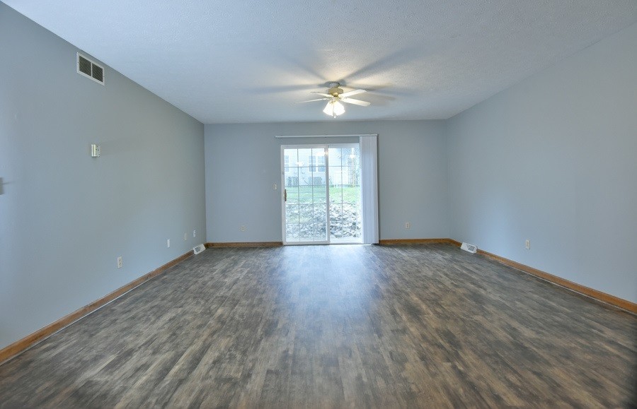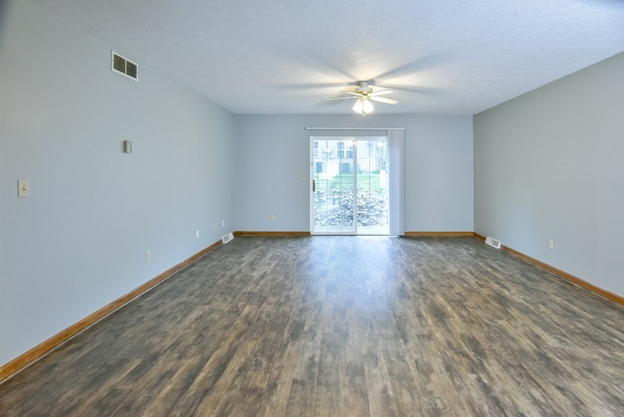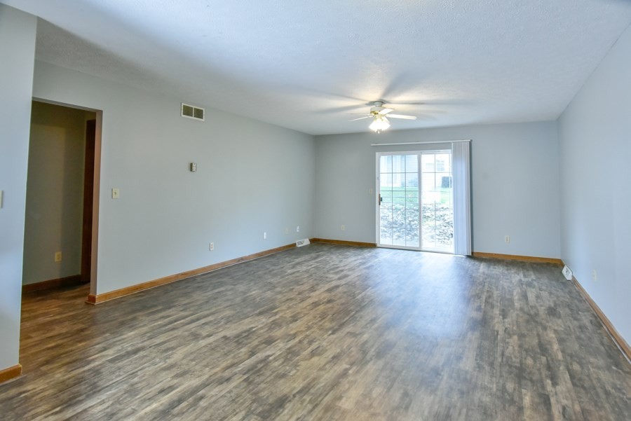 Large living/dining room with sliding door to patio